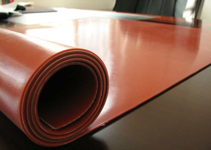 डार्क रेड हीट प्रतिरोधी सिलिकॉन रबड़ शीट रोल्स 1PLY कपड़ा सम्मिलित करने के लिए प्रबलित