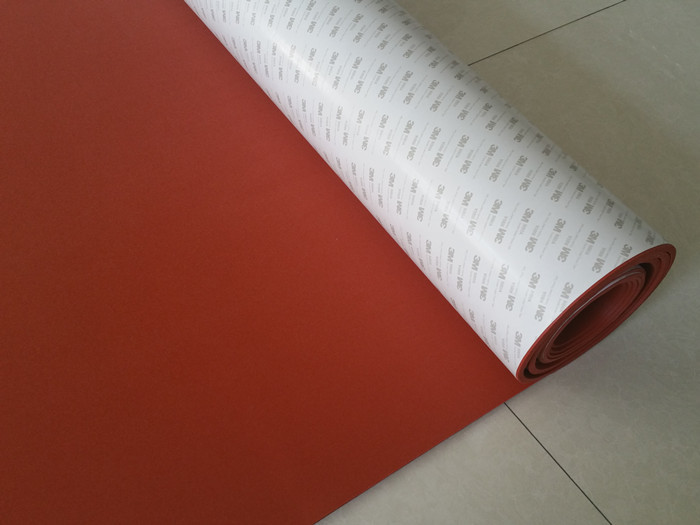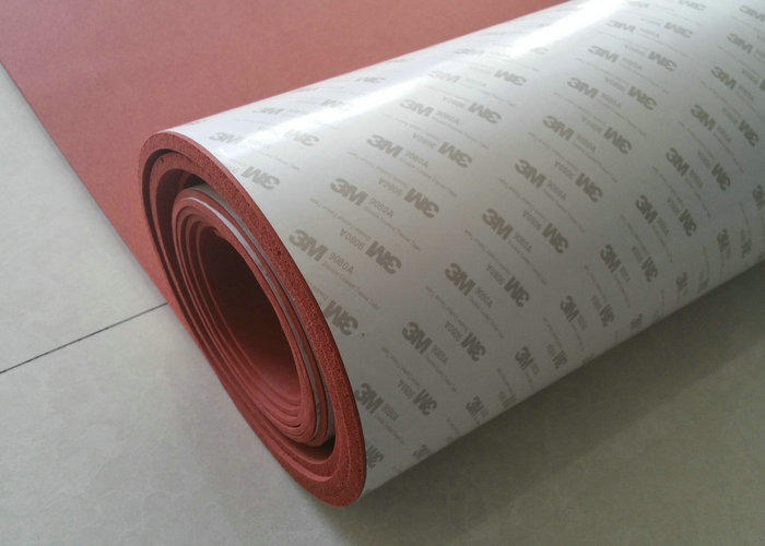 गहरे लाल रंग की बंद सेल उच्च तापमान प्रतिरोधी सिलिकॉन स्पंज शीट जिसमें 3M चिपकने वाला है